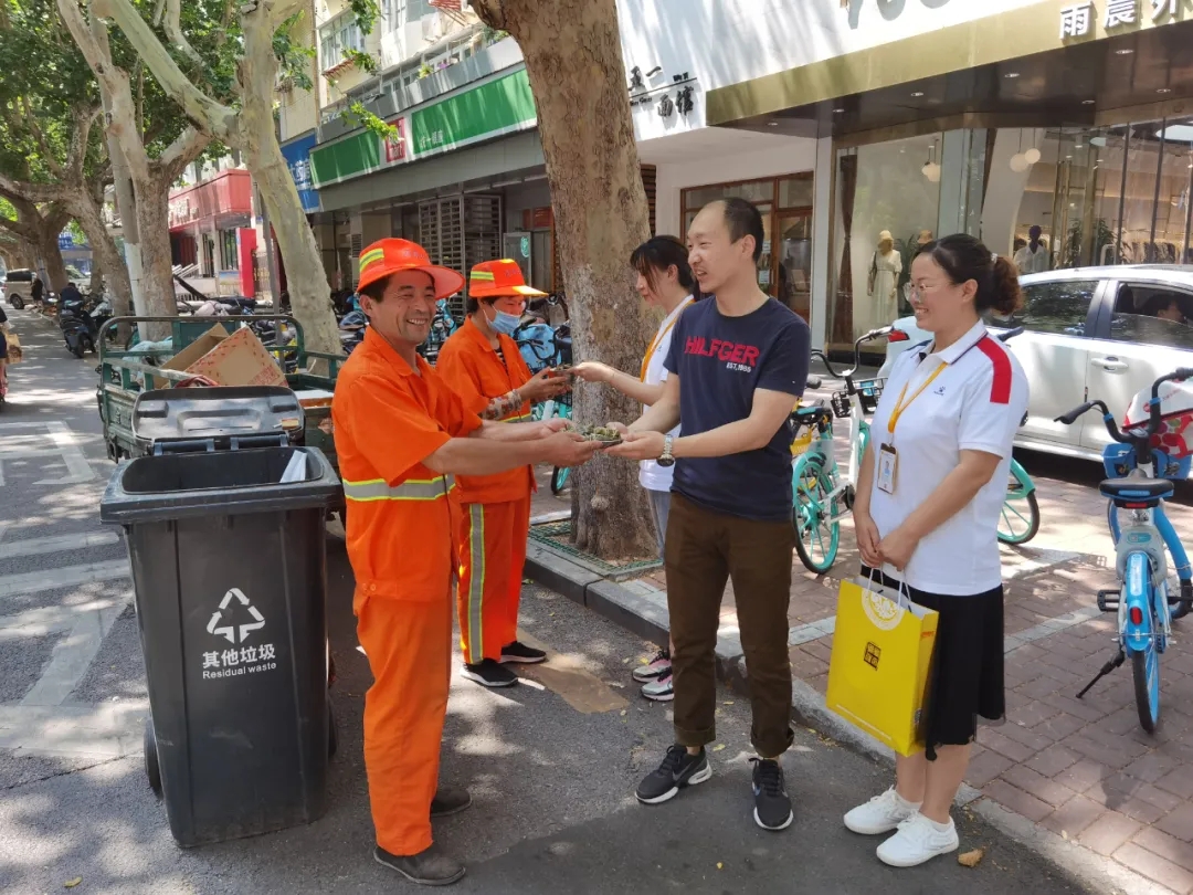 端午节来临之际,为给常年风吹日晒的环卫工人们送去节日的祝福,6月11日,山东职来职往人力资源管理服务有限公司党支部联合纬一路社区综合党委的志愿者们兵分多路到公司所在街道,给环卫工人们送去了热乎乎的“暖心粽”。